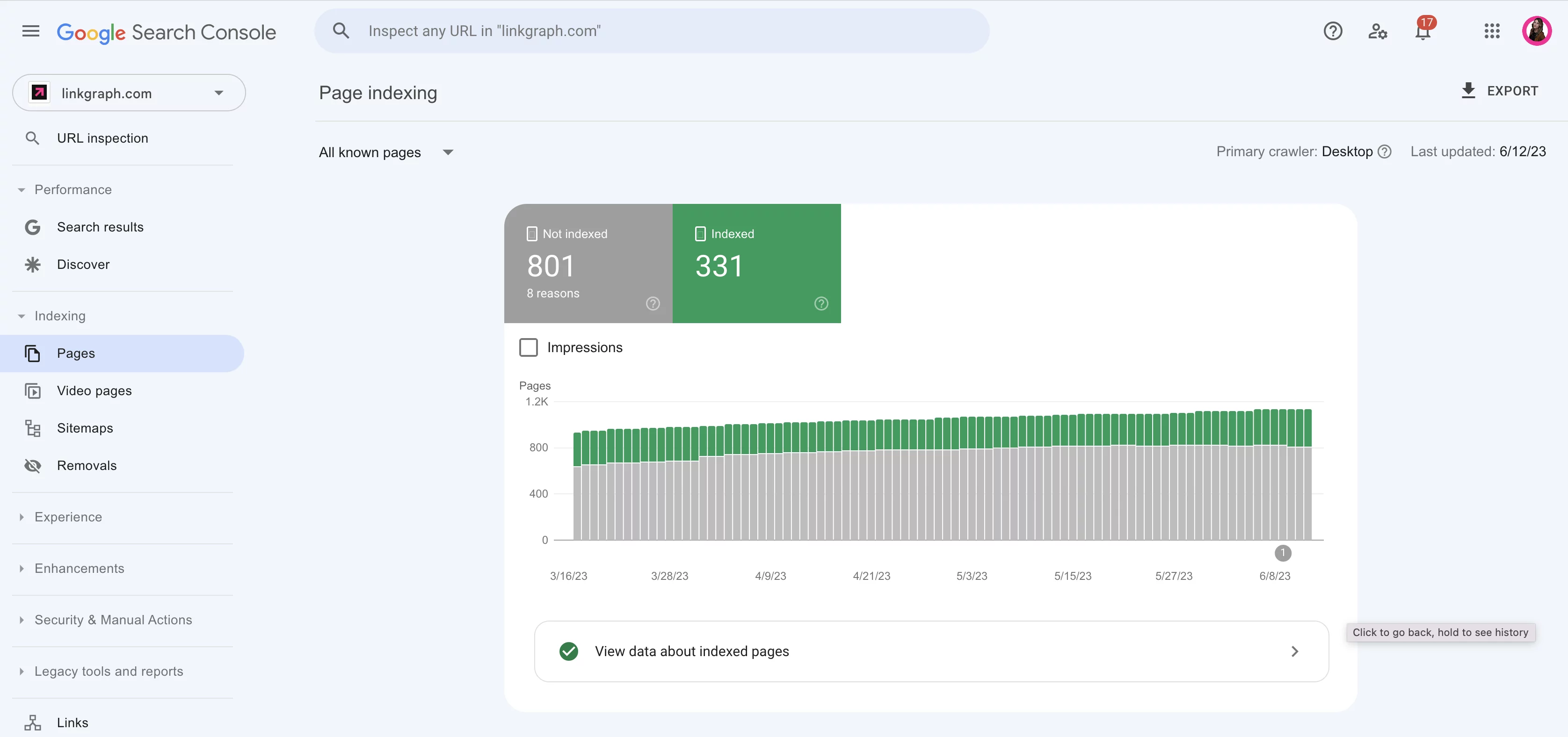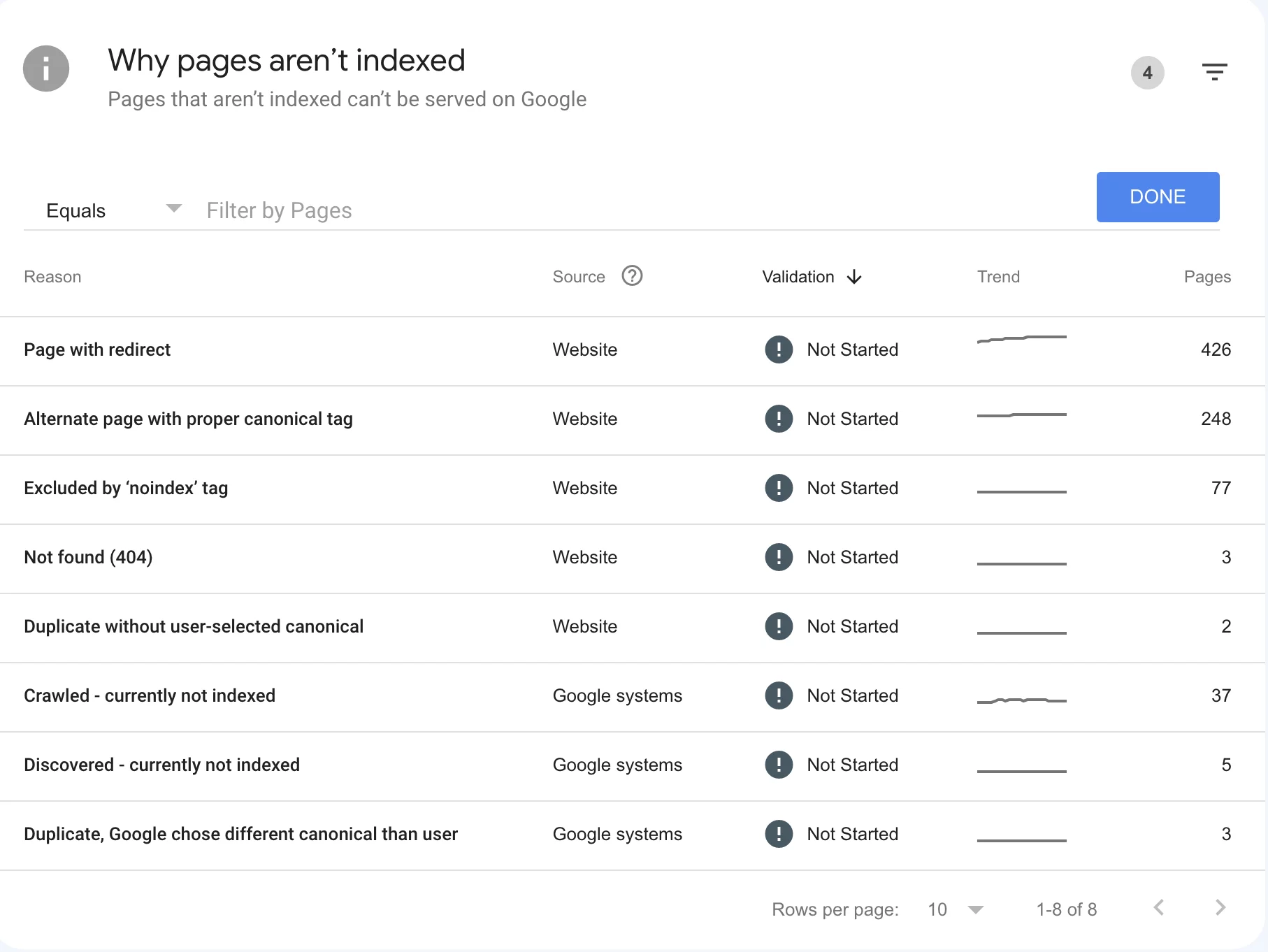 Ad esempio, se noti un improvviso calo del numero di pagine indicizzate, potrebbe indicare che c'è un problema con il tuo sito web che deve essere risolto.