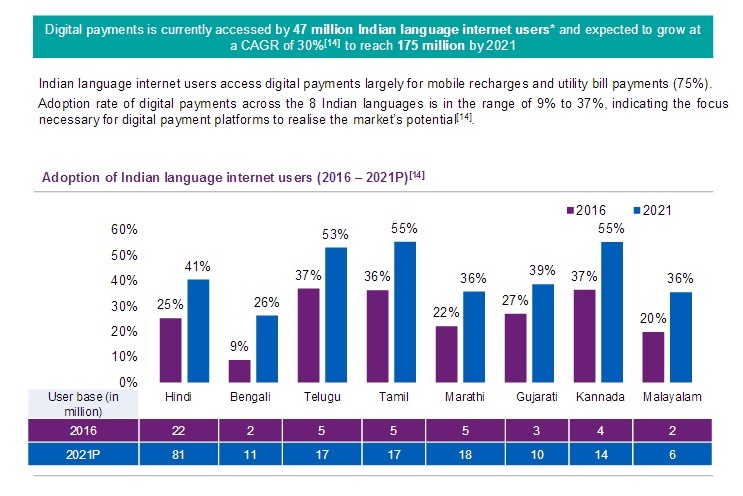 Allo stesso modo, gli utenti di lingua indiana che accedono ai pagamenti digitali triplicheranno per raggiungere 175 milioni.