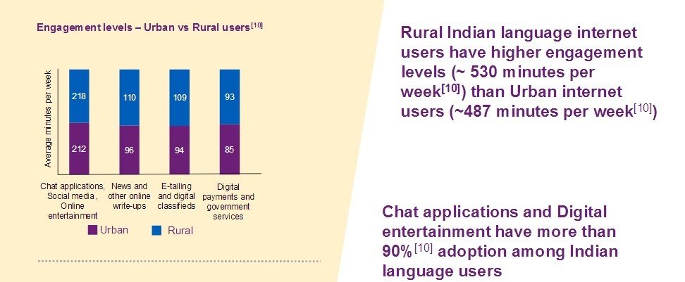 È interessante notare che gli utenti Internet di lingua indiana rurale hanno livelli di coinvolgimento più elevati rispetto agli utenti urbani.
