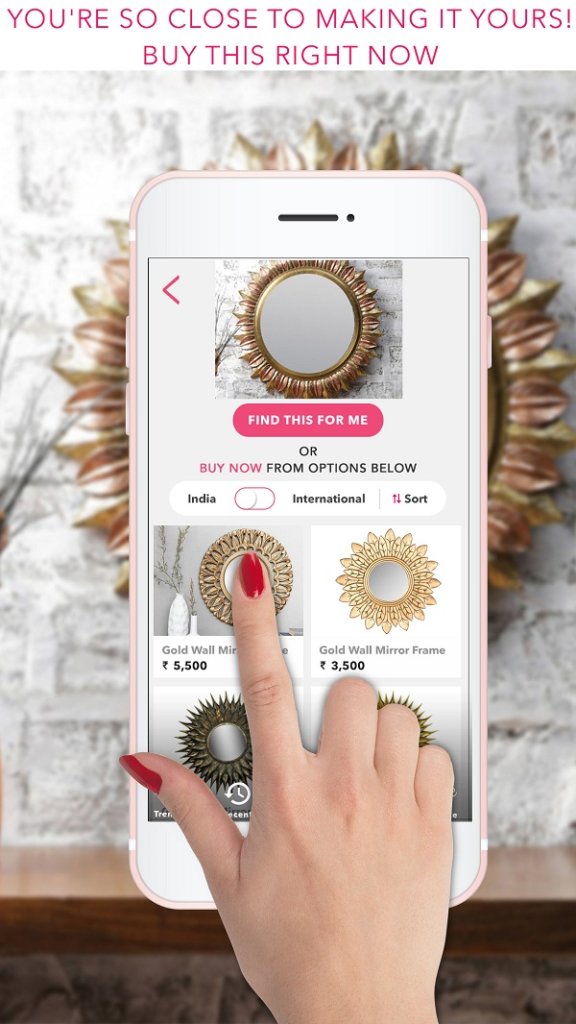 In tre semplici passaggi, rende il processo di scoperta visiva un gioco da ragazzi. Tutto quello che devi fare è scaricare l'app, fare clic su un'immagine dell'oggetto desiderato dopo aver avviato l'app o caricarne una dalla galleria del tuo telefono. L'app troverà quindi il prodotto o l'oggetto più vicino possibile tra gli oltre 400.000 prodotti presenti nel catalogo.