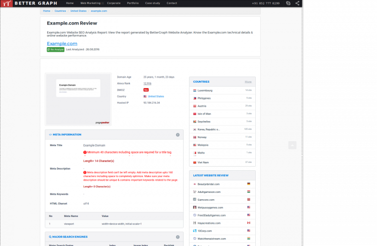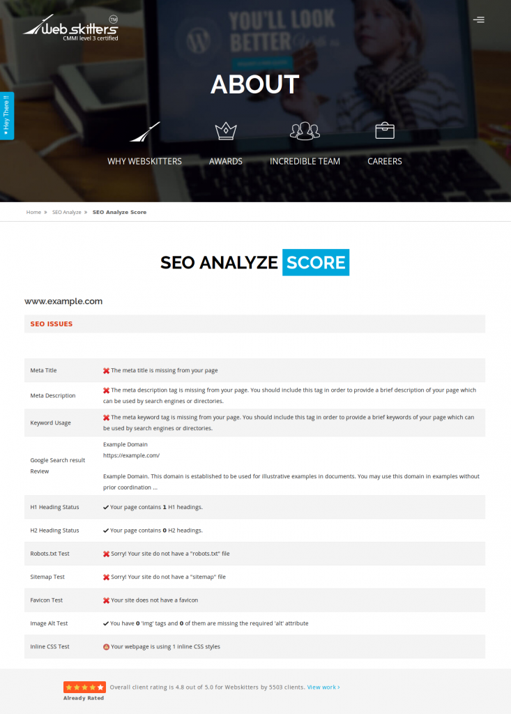 L'analisi del sito Web per gli errori SEO che contiene, assicura agli imprenditori di progettare un piano speciale per sradicare gli errori e migliorare l'immagine complessiva e la reputazione del sito Web sul motore di ricerca.