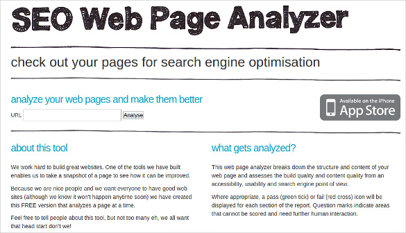 SEO Web Page Analyzer è uno strumento significativo che ti aiuta a scattare un'istantanea di una pagina e visualizzare le aree che devono essere migliorate. Tutto questo e molte informazioni più dettagliate sono offerte da questo strumento gratuitamente. Scompone la struttura e il contenuto del sito Web e valuta la qualità e le caratteristiche del sito Web, fornendo informazioni ideali e approfondite che non sono seconde a nessuno nel settore.