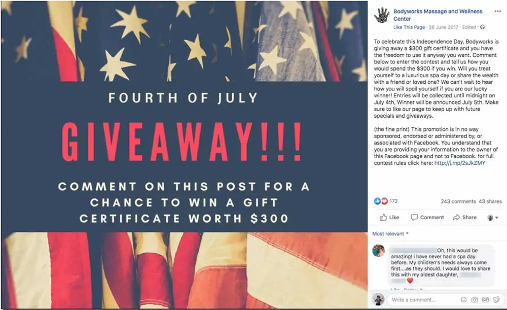 単に競争を発表するだけでは、多くの牽引力を獲得することはできません。 最も多くの聴衆を魅了するのは賞品です。 あなたのキャンペーンが独立記念日と7月4日頃であることを考えると、ここにあなたが考えることができるいくつかの賞の推薦があります。