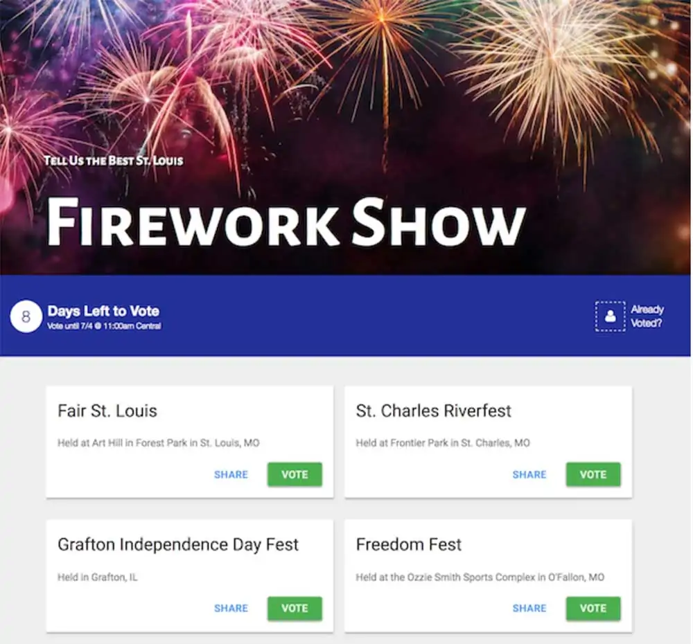7月4日の投票を計画している場合は、2つの有名な製品を用意し、どちらが好ましいかを確認するために投票を実行することを検討できます。 次に、勝った製品の割引を宣言できます。これにより、人々は投票に参加して購入するようになります。