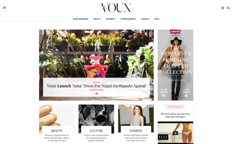 Vouxは、スタイリッシュで軽量、そしてプロのテーマであり、デザイナーの視点を持っています。 ファッショニスタ向けにカスタムメイドされたこのテーマには、興味深いデザインやユニークなレイアウトを作成するための多くのデモンストレーション、要素、カスタマイズオプションがあります。