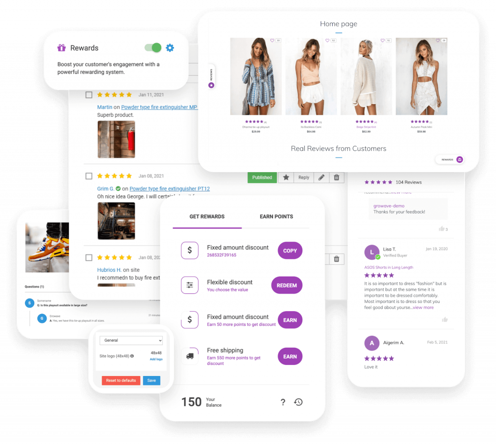 簡単に言うと、1つのダッシュボードに複数の機能を組み合わせたShopifyアプリです。 それは彼らの店のための手頃なソリューションを探しているShopify商人のために設計されています。 現在、 GrowaveはShopify App Storeで唯一、レビュー、忠誠心、UGCを1つのアプリに収めているアプリケーションです。 追加のアプリをダウンロードする必要はありません。すべての機能が1つの管理パネルに統合され、シームレスに連携します。