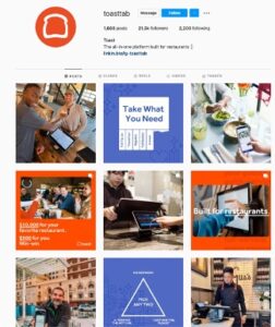 これは、レストランに注文、配達、および給与のソリューションを提供するToastの例です。 彼らのInstagramバイオは少しシンプルですが、投稿には多くの価値があります。