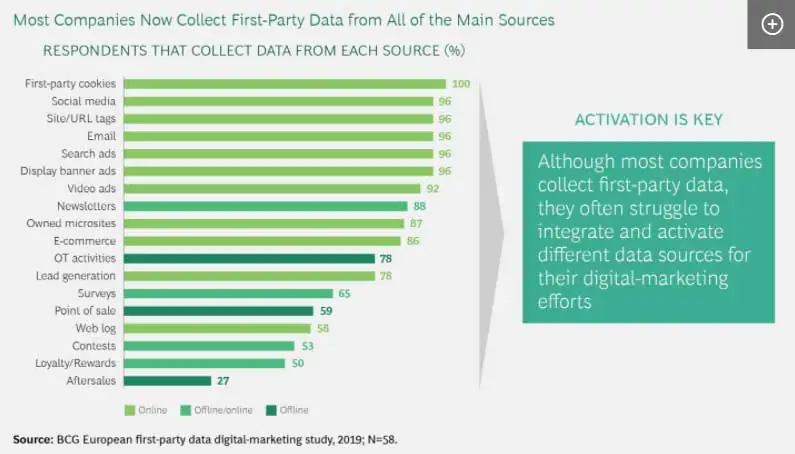 組織は、次のようなさまざまなソースからファーストパーティのデータを収集できます。