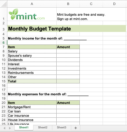 それがどのように見えるかについては、ミントの1か月の予算テンプレートを確認してください。