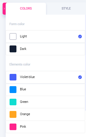 ツールの多数の機能を使用して、フォームの構成と外観の両方を編集できます。 たとえば、フォントの色、要素の色、背景色を試すことができます。 さらに、ビジネスのニーズに最適なフォームのスタイルを選択することもできます。