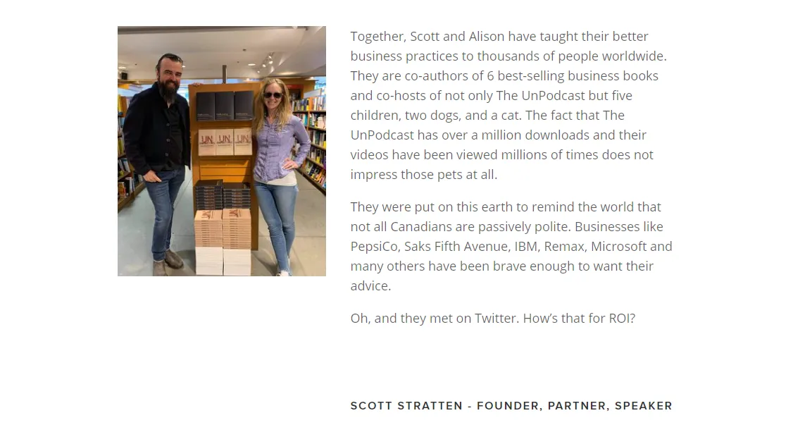 Scott は動画について 1 つか 2 つのことを教えてくれます。それが素晴らしいアドバイスであることがわかるでしょう。 Stratten は妻と 6 冊の本を共著している異端児であり、Un-Marketing を決してやめないと誓っています。