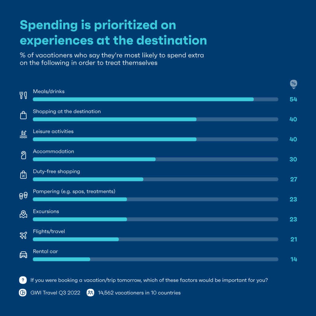 そして、私たちの旅行データに基づくと、この傾向は続くでしょう。 消費者の 90% は、今後 12 か月以内に休暇を計画していると答えており、海外旅行者の 4 分の 3 近くは、通常よりも多く、または同じ金額を使う予定です。