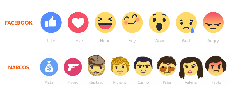 「ナルコス」はまた、9月のGOPディベート、ファンタジーフットボールのシーズン、Facebookの「リアクション」絵文字のリリースなどのリアルタイムイベントを中心に共有可能なFacebookグラフィックを作成しました。