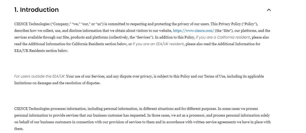 - 회사는 50,000명 이상의 캘리포니아 주민의 정보에 액세스하거나 구매 및 판매합니다.