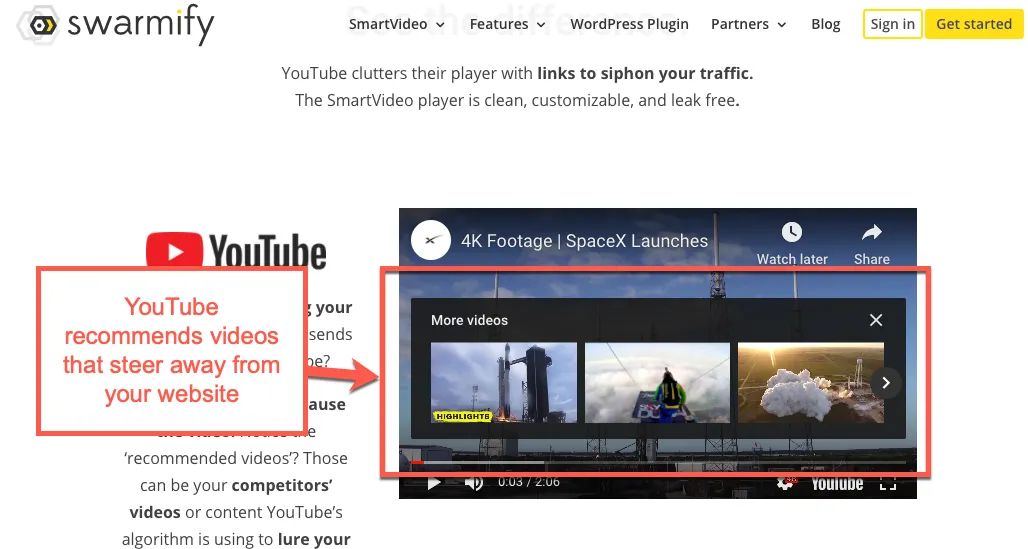 YouTube의 비디오를 웹페이지에 포함하거나 링크하면 YouTube는 웹사이트에서 관련 비디오 를 추천하여 웹 트래픽을 '훔칩니다'.