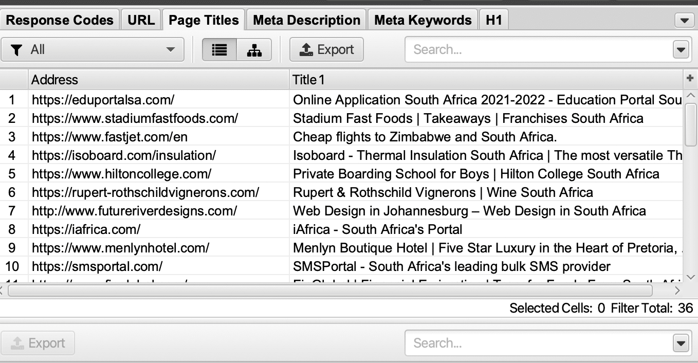그것들을 걸러내기 위해 저는 웹사이트 크롤러인 Screaming Frog를 사용하고 싶습니다.