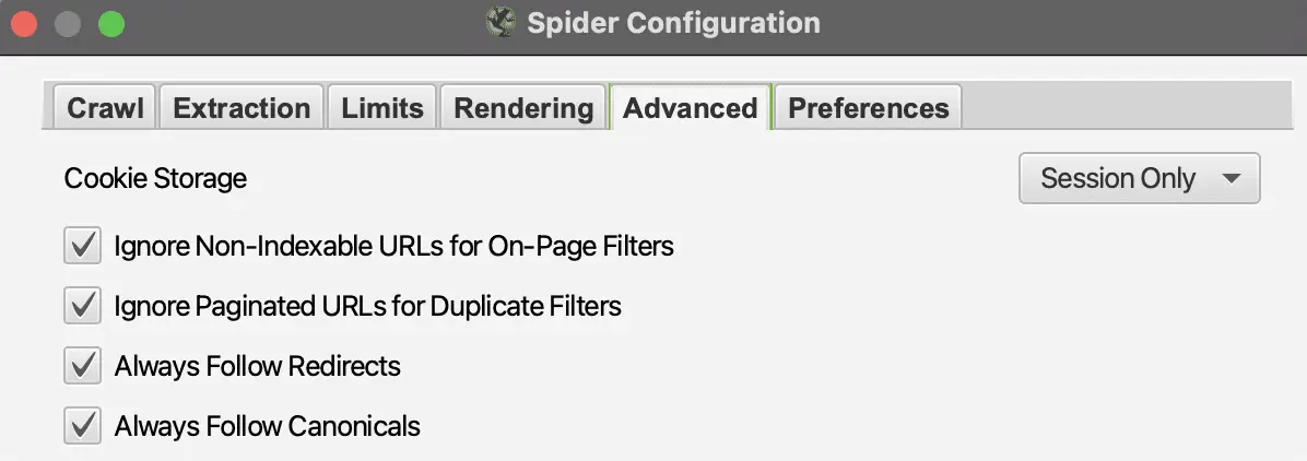 크롤링할 최대 리디렉션 수를 20으로 설정하는 것이 중요합니다. 이렇게 하면 Screaming Frog가 사이트의 최종 버전에 도달하여 필요한 정보를 스크랩할 수 있습니다.