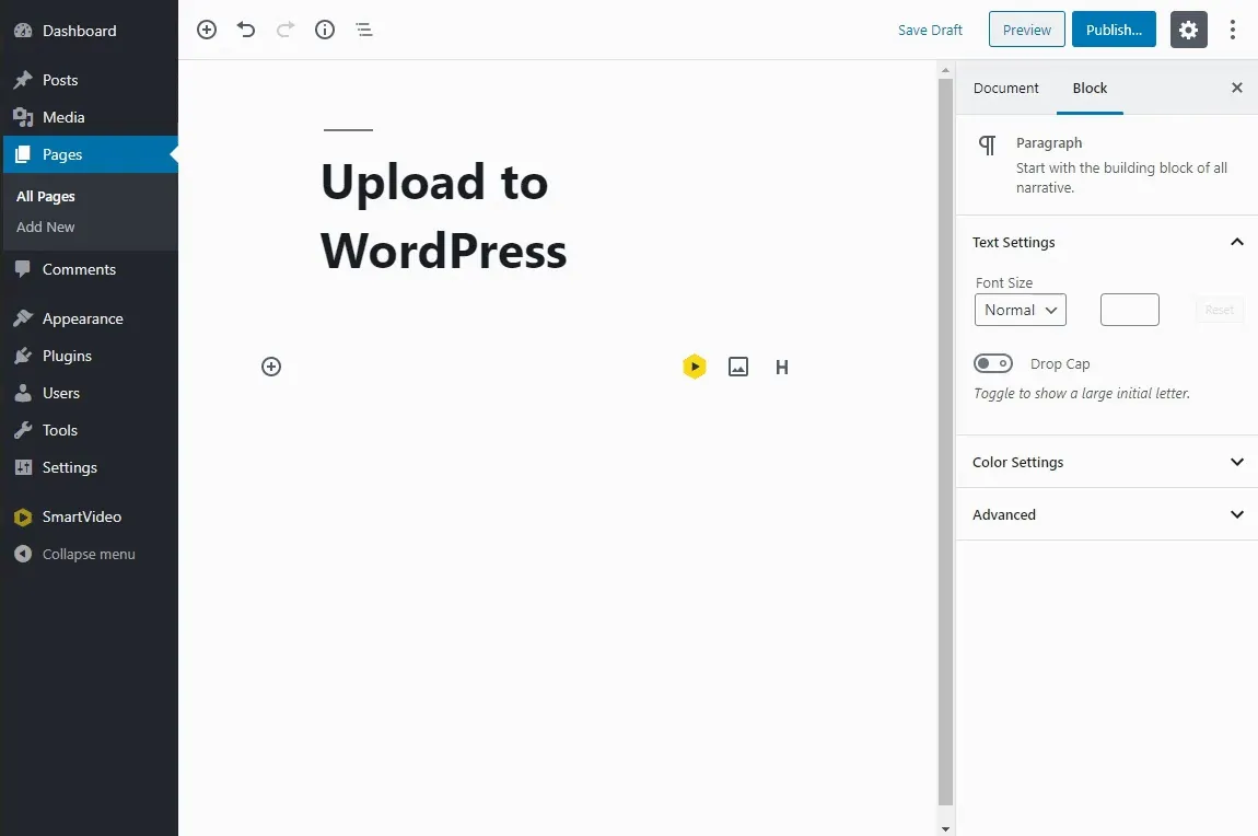비디오를 WordPress 미디어 라이브러리에 직접 업로드할 수 있지만 기본 WordPress 비디오 플레이어를 사용하는 대신 SmartVideo의 기능을 활용하여 비디오를 강화할 수 있습니다.