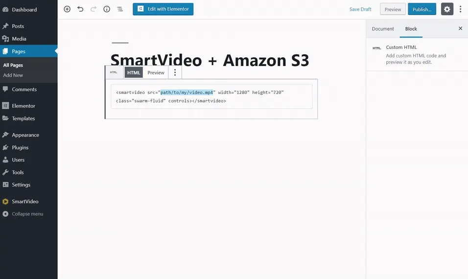 WordPress 미디어 라이브러리에 비디오를 업로드하고 SmartVideo를 통해 전달하는 방법은 다음과 같습니다.