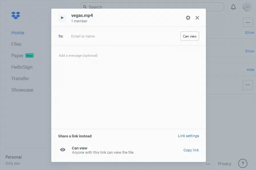 1단계 : 동영상을 Dropbox에 업로드한 후 동영상을 선택하고 공유 를 클릭합니다.