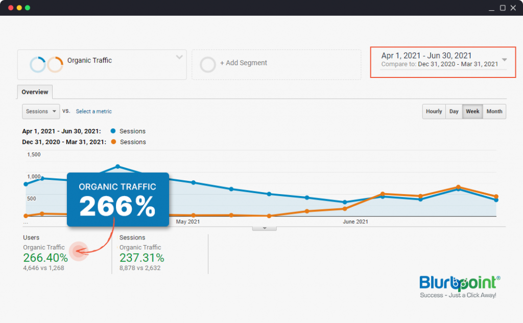 „Nasze strategie pomogły naszemu klientowi uzyskać 266% ruchu organicznego oraz znaczny wzrost ogólnego rankingu stron internetowych. Polegaliśmy wyłącznie na pozyskiwaniu organicznych leadów za pomocą niestandardowych strategii SEO, które zostały zaprojektowane w unikalny sposób po zbadaniu ich celów biznesowych i docelowych odbiorców.”