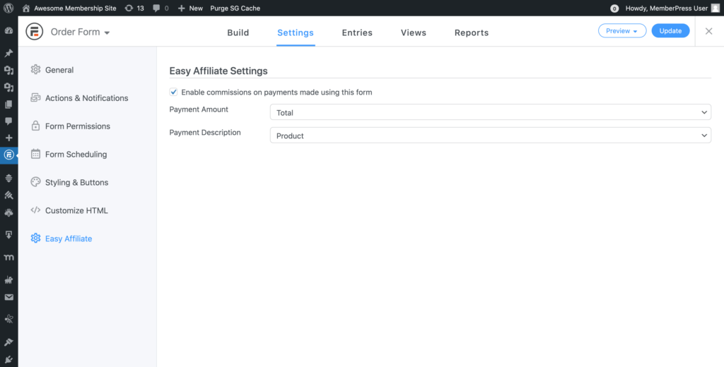 Integracja Formidable Forms łączy Cię z potężnym kreatorem formularzy płatności, który śledzi również prowizje partnerskie.