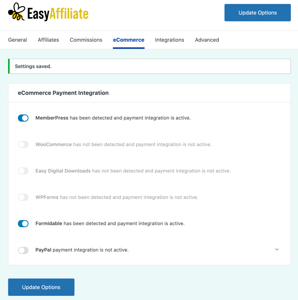 1. Otwórz Easy Affiliate > Ustawienia > eCommernce