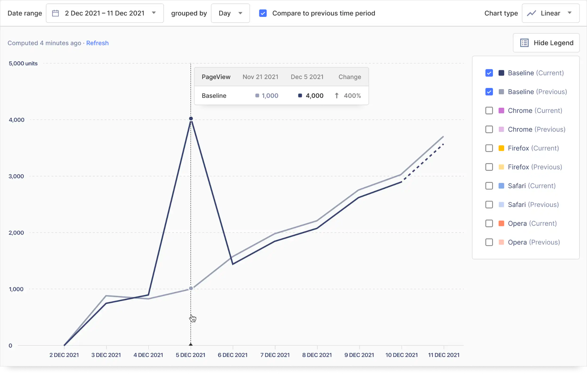 Mówiąc o spostrzeżeniach, platforma umożliwia segmentację ruchu i analizowanie interakcji użytkowników ze szczegółowymi wglądami w różne grupy użytkowników. Chociaż jest to nasz najlepszy wybór pod względem funkcji prywatności, Fathom jest również wyróżniającym się wyborem ze względu na zakres funkcji analitycznych.