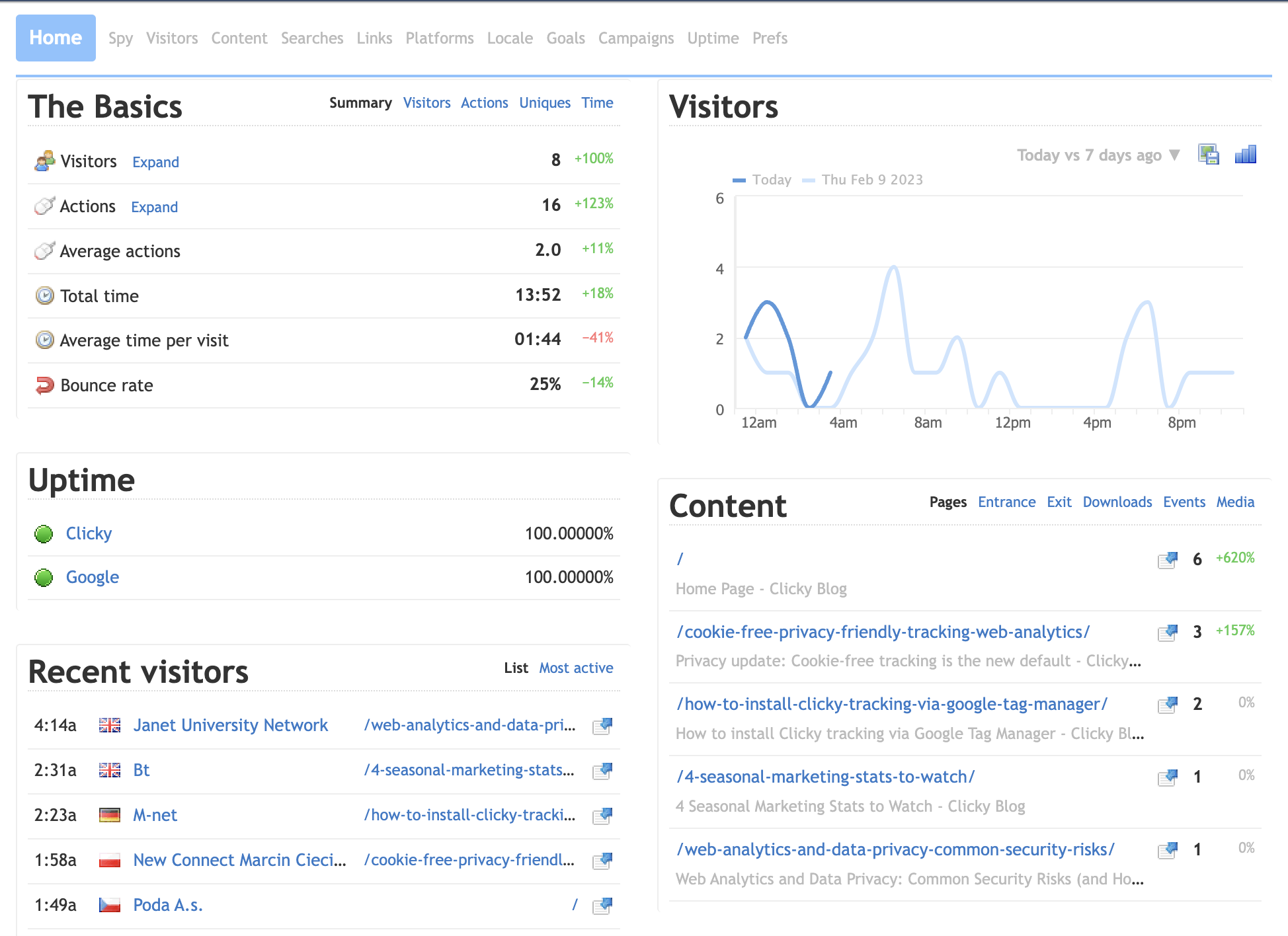 - Idealny do analizowania danych o ruchu w czasie rzeczywistym, a także zawiera pewne funkcje SEO
