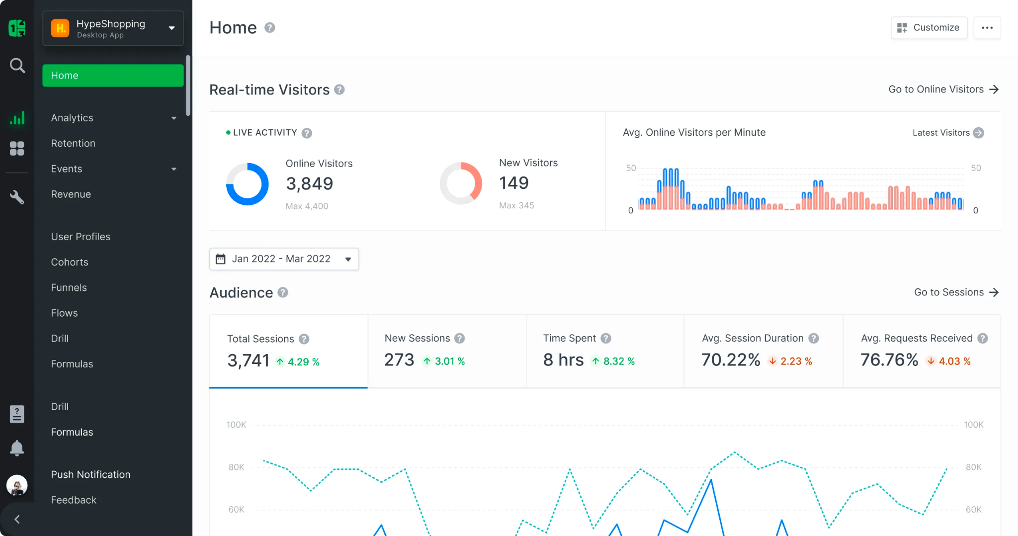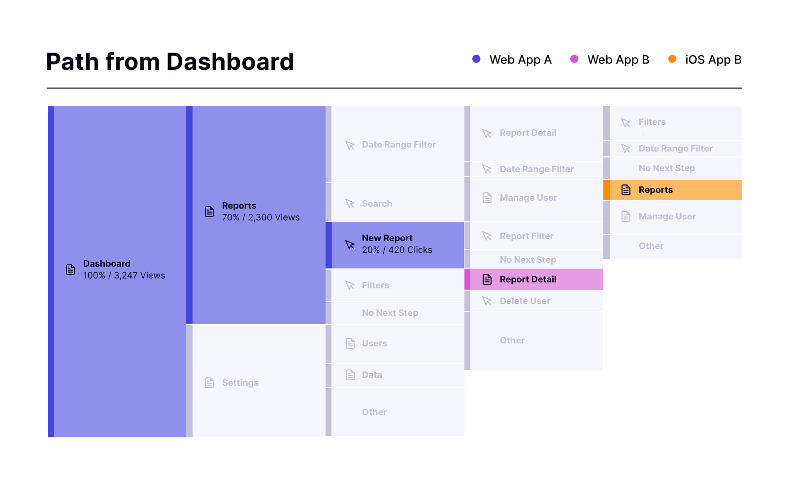 - Obejmuje większość danych analitycznych dotyczących zachowania użytkowników, ale brakuje mu funkcji specyficznych dla SEO i jest bardziej odpowiedni do analiz produktów