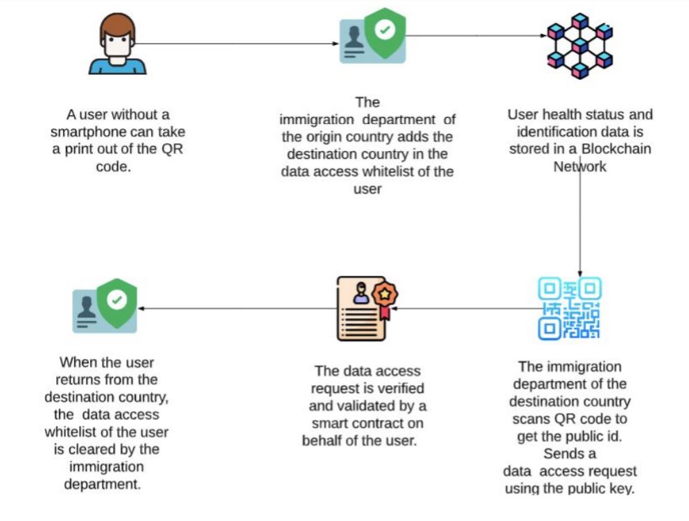 Kraje świata lub konsorcjum krajów mogą otworzyć dla siebie granice w oparciu o system dostępu oparty na kartach zdrowia. Technologia Blockchain może ułatwić konsorcjum wykonanie następujących czynności:
