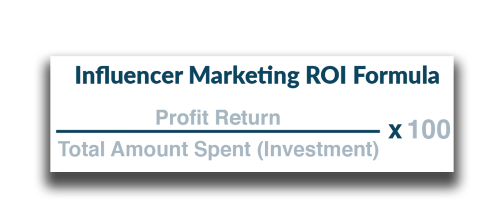 Oprócz znanej formuły obliczania ROI kampanii influencer marketingowej (pokazanej poniżej), istnieją różne KPI do monitorowania: świadomość marki i bezpośrednia reakcja.