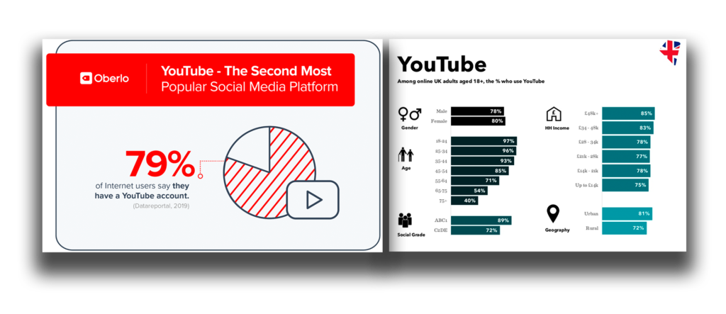 Najważniejsze w YouTube jest to, że ma największy zasięg, a zatem zaufanie wśród różnych grup demograficznych. Co więcej, jest uważany za wyszukiwarkę i zajmuje drugie miejsce po Google, jeśli chodzi o zapytania o instrukcje i recenzje produktów.