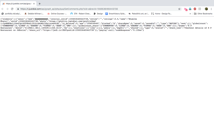 „API połączone z bazą danych recenzentów Justdial było niechronione od momentu założenia firmy. Ta luka oznacza, że imię i nazwisko recenzenta, numer telefonu komórkowego i lokalizacja były publicznie dostępne w Internecie” – powiedział Rajaharia Inc42.