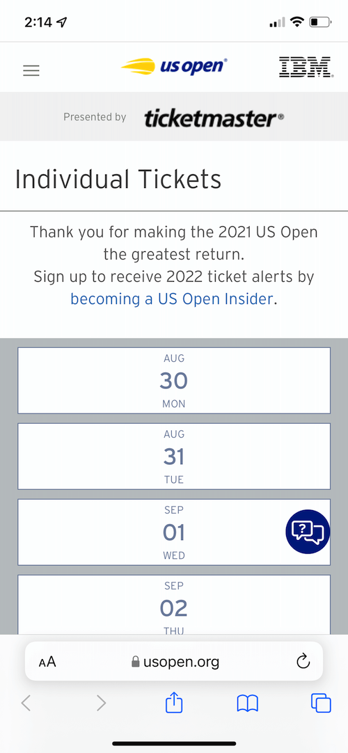 Na przykład ten kod QR wysyła skanery do strony docelowej sprzedaży biletów US Open 2021.