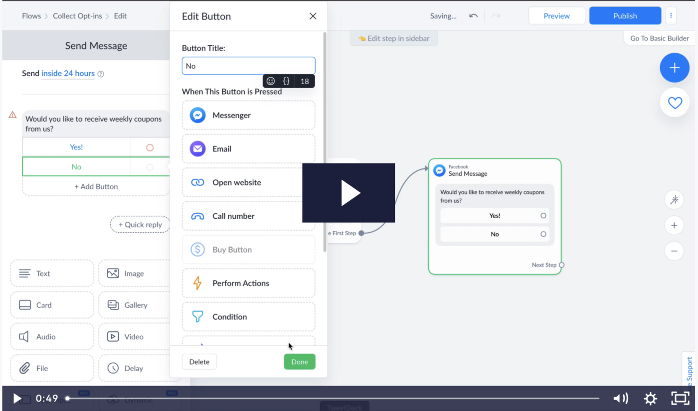 Zbieranie zgody i tworzenie tematów można łatwo wykonać podczas budowania automatyzacji za pomocą Flow Builder. Aby to zrobić:
