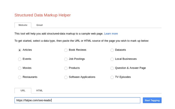 Marker danych jest przydatny. Upewnij się, że jesteś zalogowany na swoje firmowe konto Google, podłącz jeden ze swoich adresów URL i otaguj go tak samo, jak w przypadku Asystenta oznaczania danych strukturalnych.