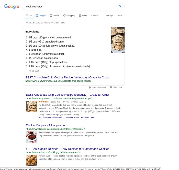 Jednak niezależnie od tego, ile typów danych wykorzystują do zrozumienia i rankingu witryn, tylko kilka z nich jest używanych w ich opisach rozszerzonych (przynajmniej na razie).