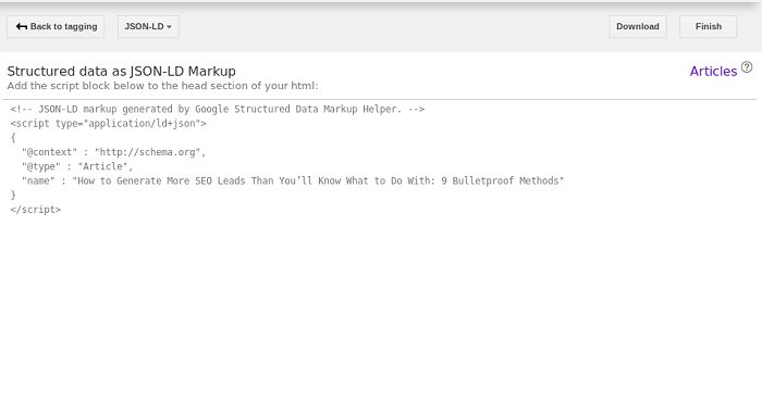Z drugiej strony JSON-LD to tylko niewidoczny fragment kodu, przetwarzany tylko przez boty, które odwiedzają Twoją witrynę. Duża różnica polega na tym, że musisz wszystko zdefiniować od nowa. Załóżmy, że podajesz nazwę swojego posta na blogu. Musisz wpisać go ponownie, zamiast owijać go wokół widocznej treści.