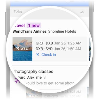 A oto przykład przycisku, który pojawia się obok wszystkich Twoich e-maili dotyczących rezerwacji hotelu.