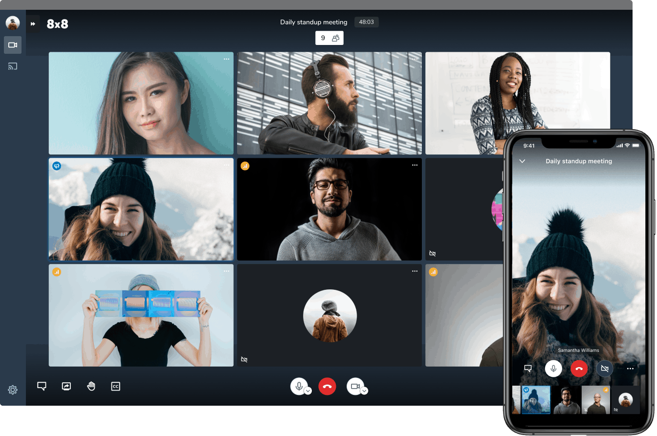 8 X 8 Meet to jedna z najlepszych alternatyw Zoom dostępnych na rynku, która umożliwia do 100 aktywnych uczestników na komputerach stacjonarnych i urządzeniach mobilnych.
