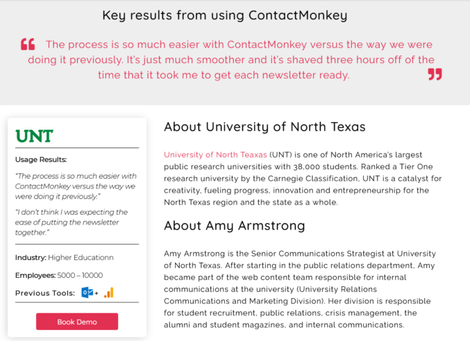 Mostre a seus clientes e o que eles pensam sobre seu produto para ajudar a reafirmar as escolhas que os compradores estão fazendo – isso ajudará você a ganhar confiança. Isso é algo que o ContactMonkey faz muito bem.