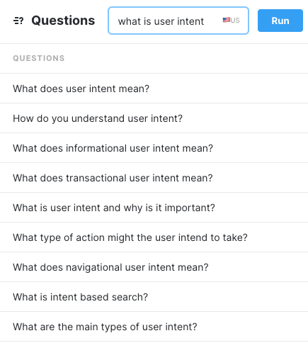 Use o aplicativo de perguntas no MarketMuse Suite. Embora simples de usar, o aplicativo é incrivelmente poderoso. Basta inserir um tópico. Ele analisa milhares de páginas de conteúdo para determinar as perguntas críticas feitas pelo seu público.