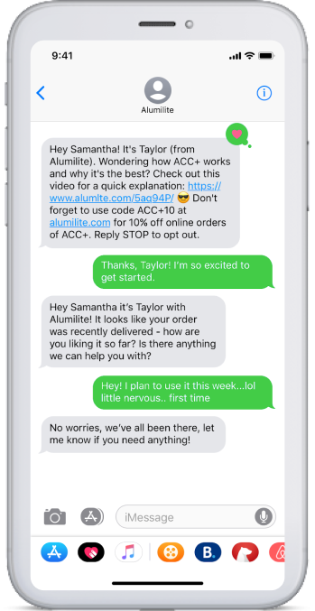 Para permitir uma campanha de mensagens de texto que envolvesse clientes em vez de spam, a equipe de marketing da Alumilite habilitou recursos de mensagens bidirecionais - o que aumentou o envolvimento do cliente desde a primeira mensagem SMS. Os resultados têm uma média consistente de 10% de taxa de cliques e surpreendentes 45% de retorno sobre o investimento (ROI).