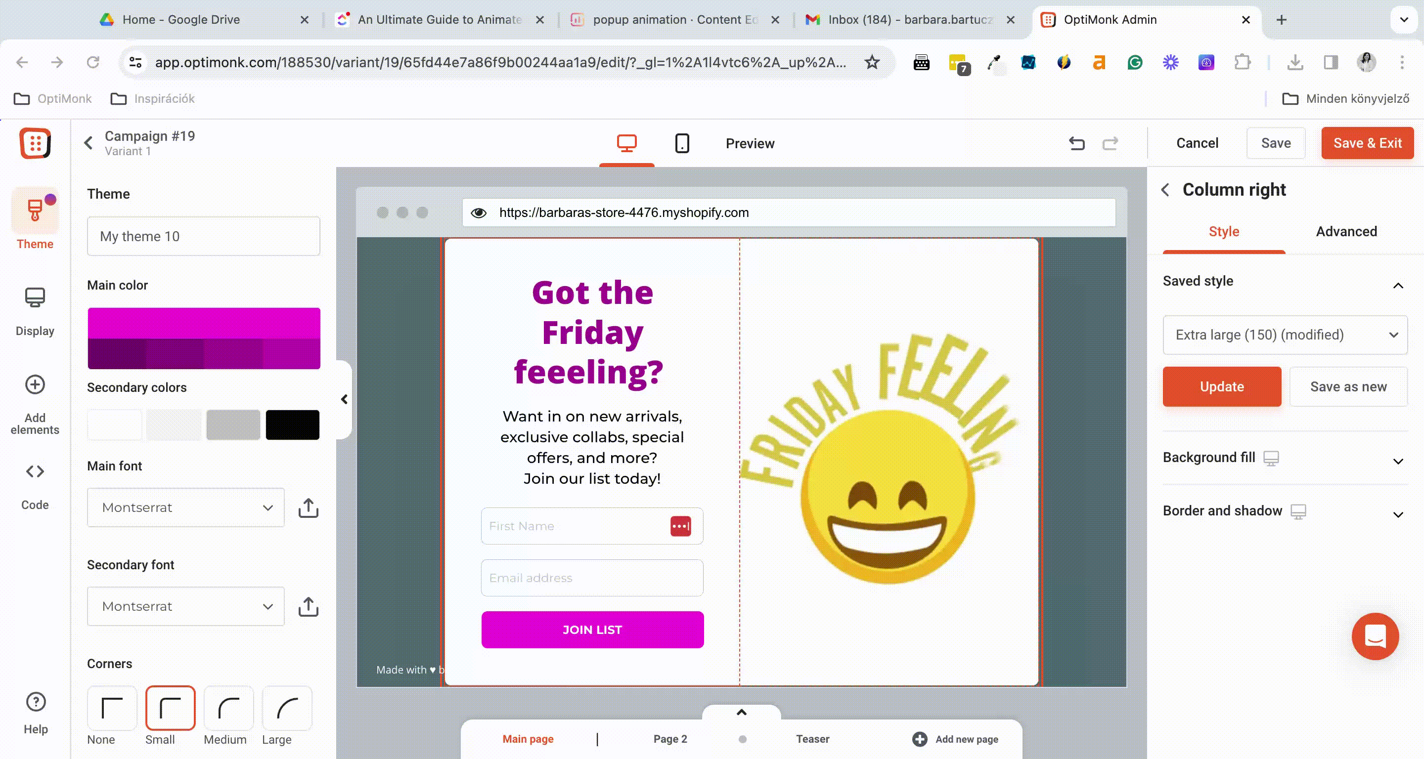 O editor de arrastar e soltar do OptiMonk facilita a modificação de texto, imagens, cores e fontes.