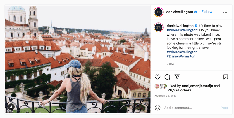 Uma empresa que dominou a arte de usar conteúdo gerado pelo usuário para mídia social é definitivamente Daniel Wellington. Eles costumam repassar imagens de seus clientes usando relógios Daniel Wellington e levá-los a compartilhar mais para ter a chance de aparecer.