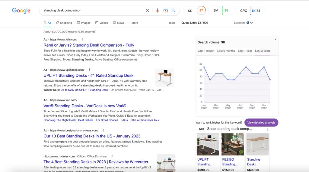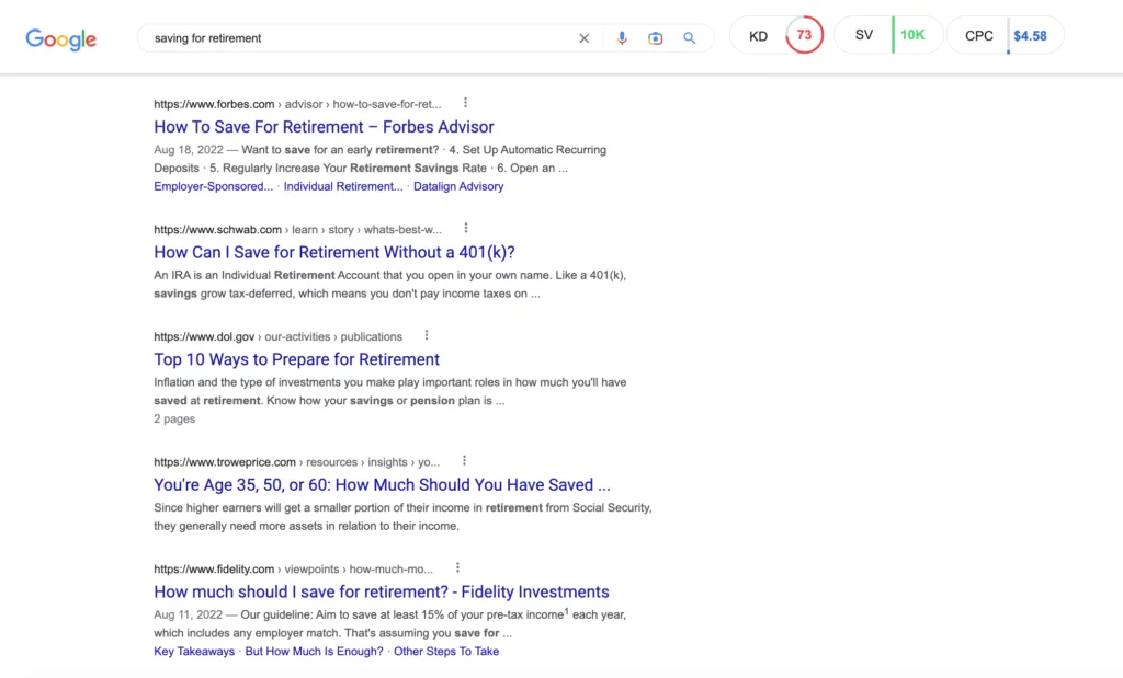 Não tem certeza de qual é a intenção de pesquisa de uma palavra-chave? Veja o conteúdo que já está classificado na página 1.