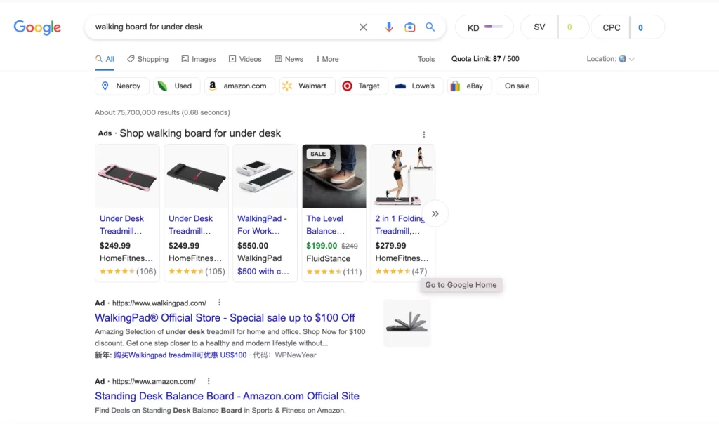 As pesquisas transacionais geralmente retornam resultados avançados, o que significa resultados além do tradicional link azul. Eles incluirão imagens de produtos, preços, avaliações e outras informações sobre o produto.