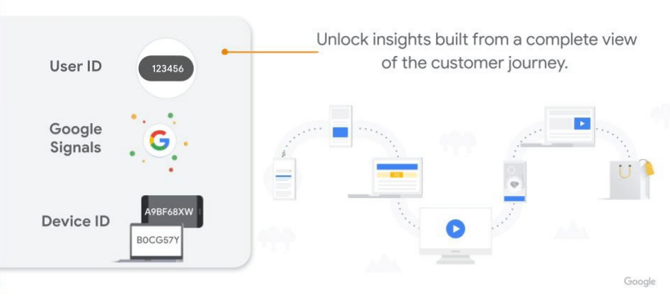 3. O GA4 dá muita atenção à jornada do usuário. Agora, você pode medir a interação do usuário em todas as plataformas e obter uma visão holística. Em outras palavras, se um usuário de um computador ou telefone executou algumas ações em seu site e, em seguida, fez o download do aplicativo para dispositivos móveis da sua empresa e fez uma compra ou outras ações, o GA4 permite combinar as ações do usuário usando dispositivos diferentes e refleti-las com precisão nos relatórios .