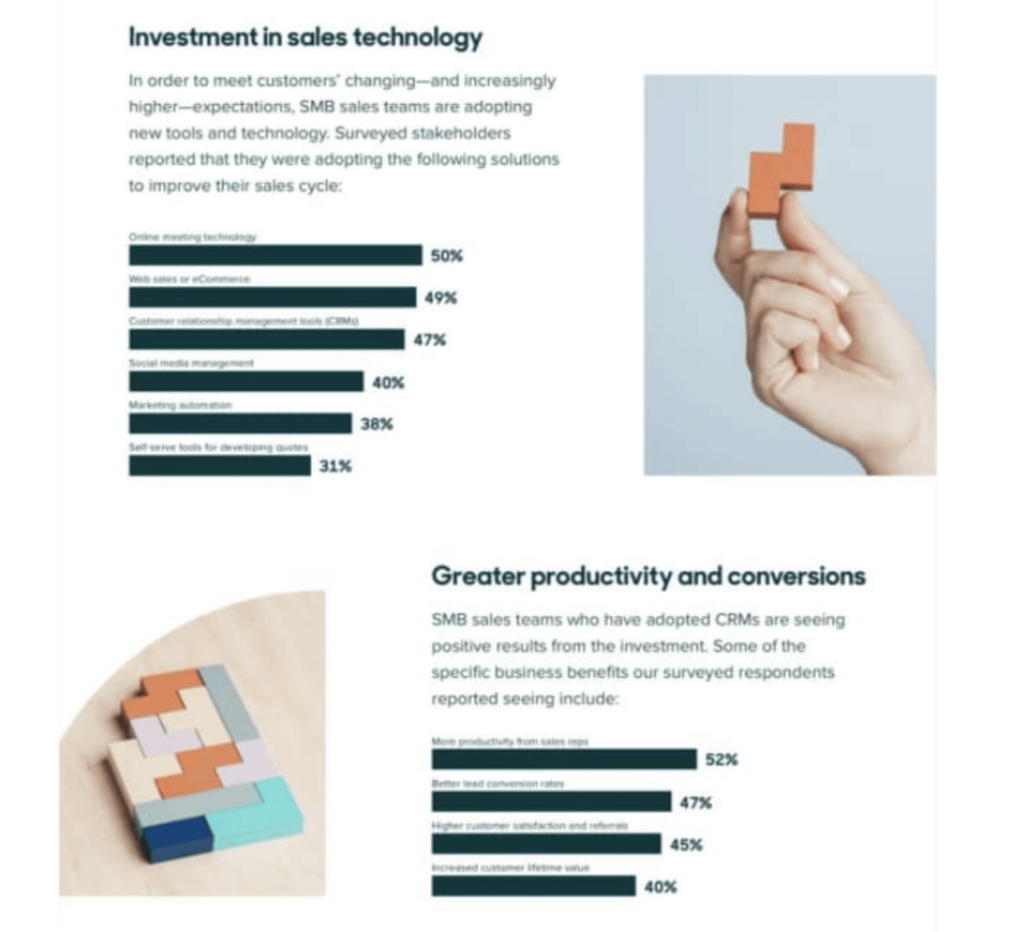 Este posibil ca diagramele și graficele să fie mai implicate cu mai multe bucăți de text. Chiar dacă s-ar putea să nu fie la fel de interesante, ele totuși rotunjesc mesajul sau argumentul de vânzare pe care doriți să le transmiteți consumatorilor dvs.